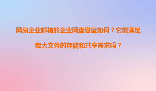 2025-11-20網(wǎng)易企業(yè)郵箱的企業(yè)網(wǎng)盤(pán)容量詳解:能否滿足大文件存儲(chǔ)與共享需求? 一、網(wǎng)易企業(yè)郵箱企業(yè)網(wǎng)盤(pán)的容量規(guī)格 網(wǎng)易企業(yè)郵箱針對(duì)不同規(guī)模企業(yè)提供靈活的網(wǎng)盤(pán)容量方案。基礎(chǔ)版本通常提供每人5GB起的獨(dú)立存儲(chǔ)空...