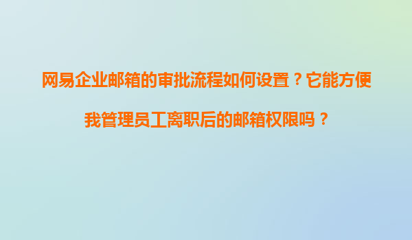 2025-11-19網(wǎng)易企業(yè)郵箱審批流程設(shè)置指南與離職員工郵箱權(quán)限管理 一、網(wǎng)易企業(yè)郵箱審批流程設(shè)置步驟 網(wǎng)易企業(yè)郵箱提供靈活的審批流程配置功能,幫助企業(yè)實(shí)現(xiàn)高效管理。以下是詳細(xì)設(shè)置步驟: ...