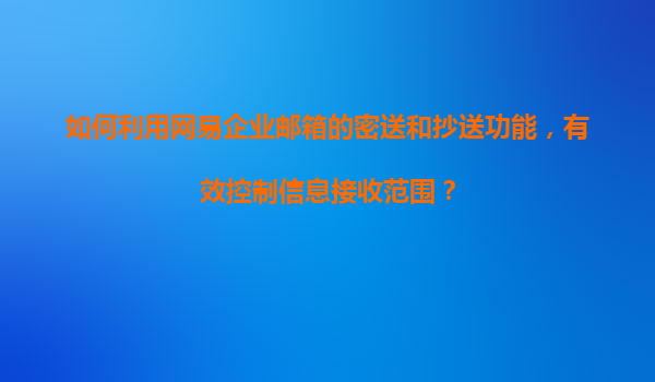 2025-11-19如何利用網(wǎng)易企業(yè)郵箱的密送和抄送功能,有效控制信息接收范圍 一、網(wǎng)易企業(yè)郵箱的核心優(yōu)勢(shì) 網(wǎng)易企業(yè)郵箱作為國(guó)內(nèi)領(lǐng)先的企業(yè)級(jí)郵件服務(wù),具備以下顯著優(yōu)勢(shì): 高安全性:采用SSL加密傳輸,配備專(zhuān)業(yè)反垃圾...