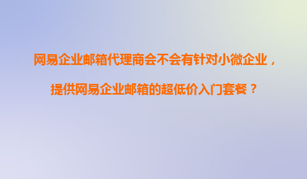 2025-11-19網(wǎng)易企業(yè)郵箱代理商是否會(huì)為小微企業(yè)提供超低價(jià)入門(mén)套餐? 1.網(wǎng)易企業(yè)郵箱的市場(chǎng)定位與代理商體系 網(wǎng)易企業(yè)郵箱是國(guó)內(nèi)領(lǐng)先的企業(yè)級(jí)郵件服務(wù)提供商,憑借其穩(wěn)定、安全、高效的特點(diǎn),深受廣大企業(yè)...