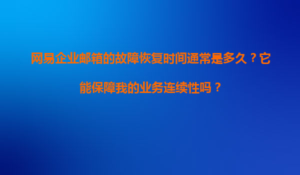 2025-11-19網(wǎng)易企業(yè)郵箱的故障恢復(fù)時(shí)間通常是多久?它能保障我的業(yè)務(wù)連續(xù)性嗎? 一、網(wǎng)易企業(yè)郵箱的技術(shù)優(yōu)勢(shì)與故障恢復(fù)能力 作為國(guó)內(nèi)領(lǐng)先的企業(yè)郵箱服務(wù)提供商,網(wǎng)易企業(yè)郵箱憑借其強(qiáng)大的技術(shù)實(shí)力和穩(wěn)定的服務(wù)架...