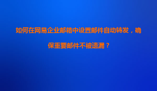 2025-11-19如何在網(wǎng)易企業(yè)郵箱中設置郵件自動轉發(fā),確保重要郵件不被遺漏? 在現(xiàn)代企業(yè)中,高效溝通是成功的關鍵之一。電子郵件作為最常用的溝通工具之一,其管理和使用效率直接影響企業(yè)的運營效率。網(wǎng)易企業(yè)郵箱作...