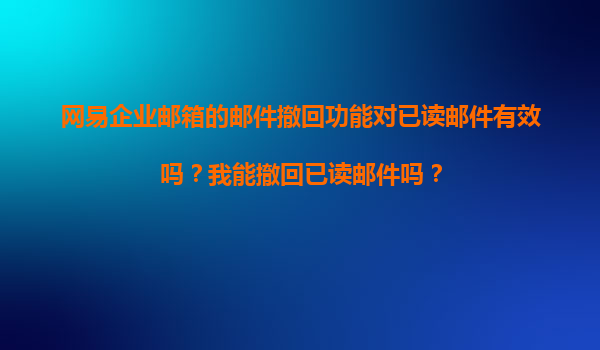 2025-11-18網(wǎng)易企業(yè)郵箱郵件撤回功能詳解:已讀郵件能否成功撤回? 一、網(wǎng)易企業(yè)郵箱郵件撤回功能概述 網(wǎng)易企業(yè)郵箱作為國內(nèi)領先的企業(yè)級郵箱服務商,憑借穩(wěn)定高效的系統(tǒng)和豐富的功能模塊,受到眾多企業(yè)的青...