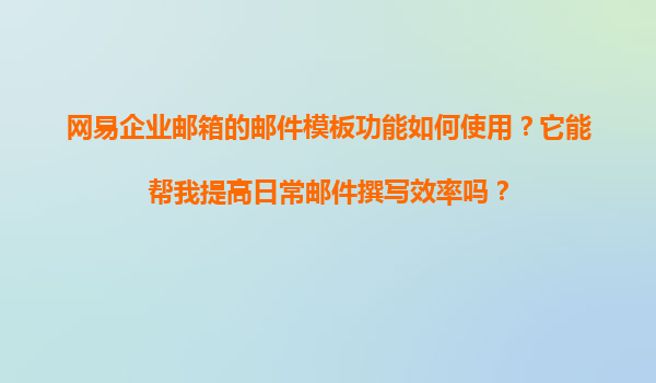 2025-11-19網(wǎng)易企業(yè)郵箱郵件模板功能簡介 網(wǎng)易企業(yè)郵箱作為國內(nèi)領先的企業(yè)級郵箱服務提供商,不僅提供穩(wěn)定高效的郵件收發(fā)功能,還內(nèi)置了強大的郵件模板功能。郵件模板功能允許用戶預先設置好常用的郵件格式和內(nèi)容,在需要時快...