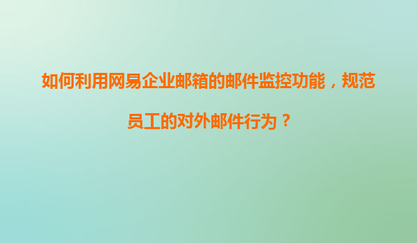 2025-11-16如何利用網(wǎng)易企業(yè)郵箱的郵件監(jiān)控功能,規(guī)范員工的對外郵件行為? 一、網(wǎng)易企業(yè)郵箱的核心優(yōu)勢 網(wǎng)易企業(yè)郵箱作為國內(nèi)領(lǐng)先的企業(yè)級郵件服務(wù)提供商,其核心優(yōu)勢體現(xiàn)在: 專業(yè)監(jiān)控審計功能:支持分權(quán)限設(shè)置收發(fā)件監(jiān)...