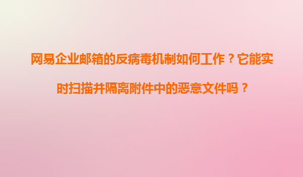 2025-11-16網(wǎng)易企業(yè)郵箱的反病毒機制解析及實時防護能力 一、網(wǎng)易企業(yè)郵箱反病毒機制的核心架構(gòu) 網(wǎng)易企業(yè)郵箱采用多層嵌套式安全防護體系,其反病毒機制基于以下核心組件構(gòu)建: 云端病毒特征庫:同步全...