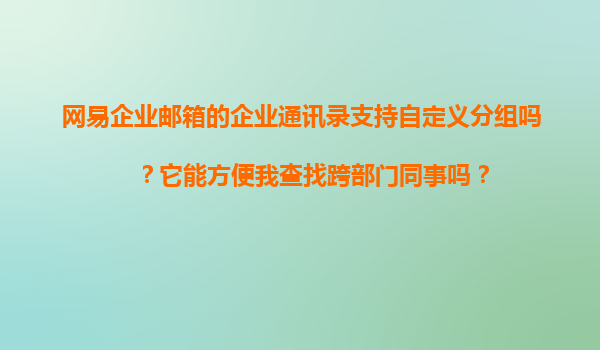 2025-11-16網(wǎng)易企業(yè)郵箱的企業(yè)通訊錄功能深度解析:自定義分組與跨部門協(xié)作 一、網(wǎng)易企業(yè)郵箱通訊錄的核心功能概覽 網(wǎng)易企業(yè)郵箱作為國內(nèi)領(lǐng)先的企業(yè)級郵箱服務(wù)提供商,其內(nèi)置的企業(yè)通訊錄功能是提升組織溝通效率的重要工具。...