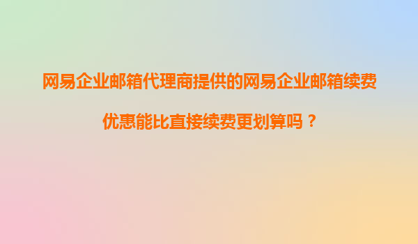 2025-11-17網(wǎng)易企業(yè)郵箱代理商提供的網(wǎng)易企業(yè)郵箱續(xù)費優(yōu)惠能比直接續(xù)費更劃算嗎? 在企業(yè)日常運營中,高效穩(wěn)定的郵箱服務(wù)是必不可少的工具。網(wǎng)易企業(yè)郵箱憑借其卓越的性能和豐富的功能,成為眾多企業(yè)的首選。然而,面對續(xù)...