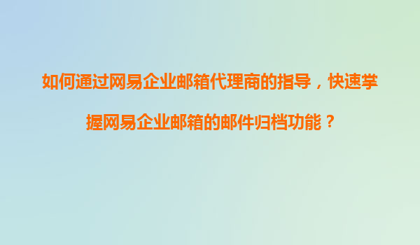 2025-11-16如何通過網(wǎng)易企業(yè)郵箱代理商的指導(dǎo),快速掌握網(wǎng)易企業(yè)郵箱的郵件歸檔功能? 一、網(wǎng)易企業(yè)郵箱郵件歸檔功能的核心價值 網(wǎng)易企業(yè)郵箱作為國內(nèi)領(lǐng)先的企業(yè)級郵箱服務(wù),其郵件歸檔功能具備以下核心優(yōu)勢: ...