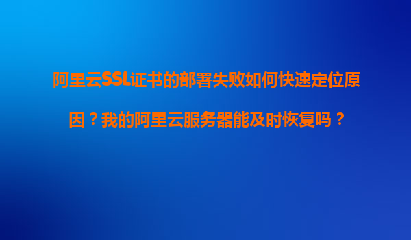 2025-11-21阿里云SSL證書的部署失敗如何快速定位原因?我的阿里云服務(wù)器能及時(shí)恢復(fù)嗎? 一、SSL證書部署失敗的常見原因分析 SSL證書部署失敗可能由多種因素導(dǎo)致,包括配置錯(cuò)誤、服務(wù)器環(huán)境不兼容、證書鏈不完整等。首...