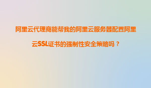 阿里云代理商能幫我的阿里云服務器配置阿里云SSL證書的強制性安全策略嗎?
