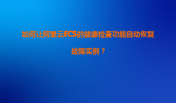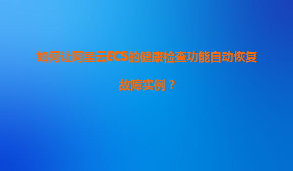 2025-11-12如何讓阿里云ECS的健康檢查功能自動恢復(fù)故障實例? ECS健康檢查的核心作用與價值 阿里云ECS的健康檢查功能是保障業(yè)務(wù)連續(xù)性的關(guān)鍵機(jī)制,通過周期性探測實例的運行狀態(tài)(如網(wǎng)絡(luò)可達(dá)性、服務(wù)端...