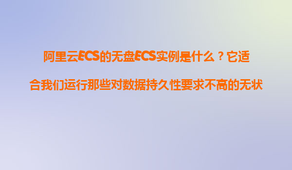 2025-11-10阿里云ECS的無盤ECS實(shí)例解析:是否適合運(yùn)行無狀態(tài)應(yīng)用? 一、什么是阿里云ECS的無盤實(shí)例 無盤ECS實(shí)例是阿里云推出的一種特殊云服務(wù)器類型,其最大特點(diǎn)是不提供本地持久化存儲,僅依賴系統(tǒng)內(nèi)存運(yùn)行。這類實(shí)...