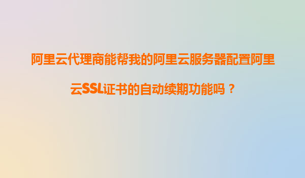 2025-11-17阿里云代理商能幫我的阿里云服務(wù)器配置阿里云SSL證書(shū)的自動(dòng)續(xù)期功能嗎? 一、阿里云SSL證書(shū)自動(dòng)續(xù)期的必要性 在當(dāng)今數(shù)字化時(shí)代,網(wǎng)站安全已成為企業(yè)運(yùn)營(yíng)的關(guān)鍵環(huán)節(jié)。SSL證書(shū)作為網(wǎng)站安全的基石,不僅能夠加...