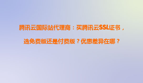 騰訊云國際站代理商:買騰訊云SSL證書,選免費版還是付費版? 一、SSL證書的核心作用與騰訊云的價值 SSL證書是保障網站數據加密傳輸的核心工具,能夠防止敏感信息被竊取,同時提升用戶對網站的信任度。...