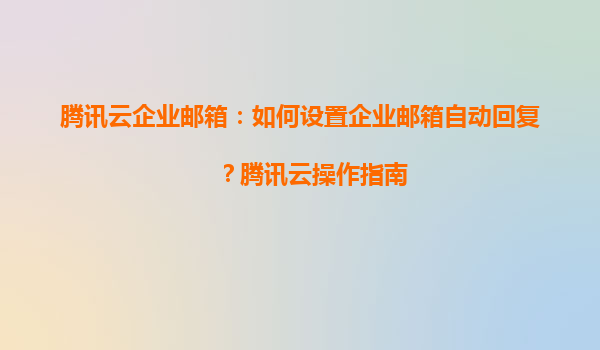 2025-04-01騰訊云企業郵箱自動回復設置指南 一、自動回復功能的核心價值 在現代化辦公場景中,企業郵箱自動回復功能已成為提升客戶服務效率的關鍵工具。通過智能響應機制,可在非工作時間自動告知客戶郵件處理時...