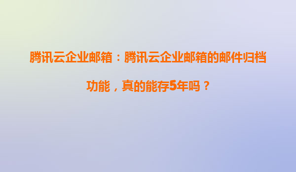 2025-04-01騰訊云企業郵箱:郵件歸檔功能真的能存5年嗎? 隨著企業對數據合規性和歷史追溯需求的提升,郵件歸檔功能成為企業郵箱選擇的重要考量因素。騰訊云企業郵箱憑借其強大的技術能力和生態優勢,推出的...