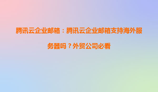 2025-04-01騰訊云企業郵箱:外貿公司拓展海外市場的可靠伙伴 一、騰訊云企業郵箱是否支持海外服務器? 騰訊云企業郵箱憑借其全球化服務器部署,為外貿企業提供無縫銜接的海外通信服務。其核心優勢包括: ...