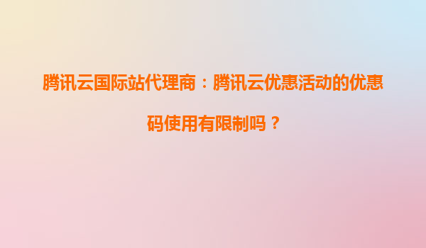 2025-04-01騰訊云國際站代理商:騰訊云優惠活動的優惠碼使用有限制嗎? 一、騰訊云國際站的核心優勢 作為全球領先的云服務提供商,騰訊云國際站通過以下優勢助力企業數字化轉型: 全球化基礎設施覆蓋:7...
