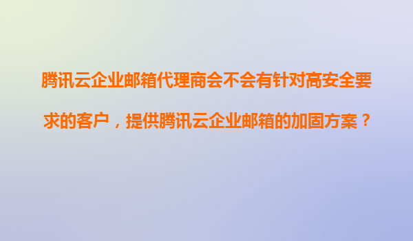 2025-11-23騰訊云企業(yè)郵箱代理商:為高安全需求客戶提供專業(yè)加固方案 在數(shù)字化時代,企業(yè)郵箱作為核心通信工具,其安全性直接關(guān)系到企業(yè)數(shù)據(jù)資產(chǎn)和商業(yè)機密的安全。針對政府機構(gòu)、金融機構(gòu)、大型企業(yè)等高安全要求客戶,騰...