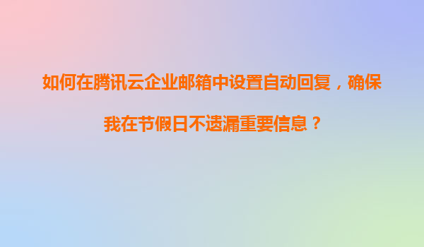 2025-11-23如何在騰訊云企業(yè)郵箱中設(shè)置自動回復(fù),確保節(jié)假日不遺漏重要信息 一、騰訊云企業(yè)郵箱的自動回復(fù)功能優(yōu)勢 騰訊云企業(yè)郵箱作為國內(nèi)領(lǐng)先的企業(yè)級郵件服務(wù),其自動回復(fù)功能不僅操作簡便,還具備以下核心優(yōu)勢: ...
