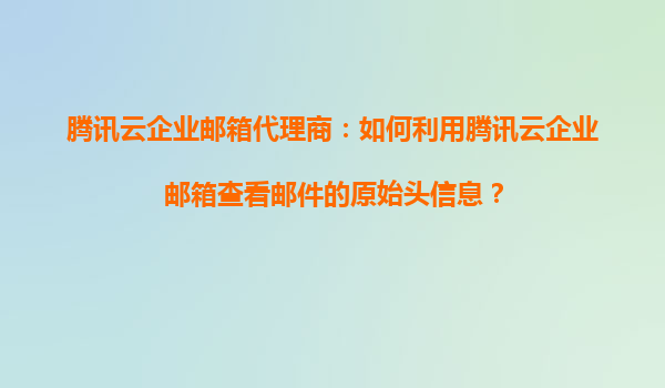 騰訊云企業郵箱代理商:如何利用騰訊云企業郵箱查看郵件的原始頭信息?