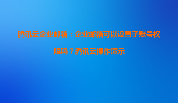 騰訊云企業(yè)郵箱:靈活管理子賬號(hào)權(quán)限,賦能企業(yè)高效協(xié)作