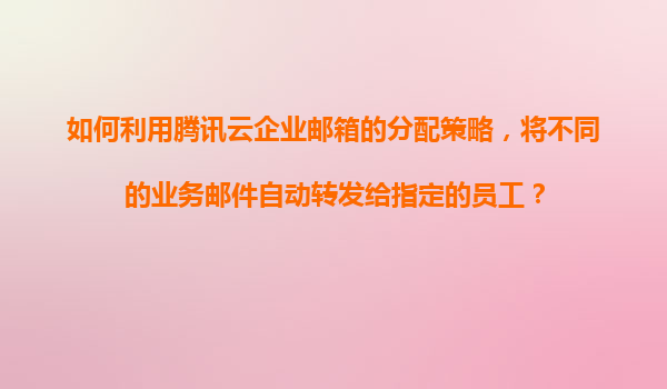 2025-11-16如何利用騰訊云企業郵箱的分配策略實現業務郵件智能分發 一、前言:企業郵件管理的挑戰 在數字化辦公場景中,企業常面臨多業務線郵件分發的效率問題。傳統手動分類方式容易導致響應延遲與責任模糊,而...