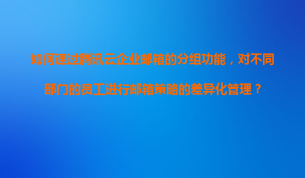 2025-11-16如何通過騰訊云企業郵箱的分組功能實現部門級郵箱策略差異化管理 一、騰訊云企業郵箱分組功能的核心價值 騰訊云企業郵箱作為企業級通信解決方案,其分組管理功能可幫助企業實現: 1.精細化權限控制:按部門設置郵...