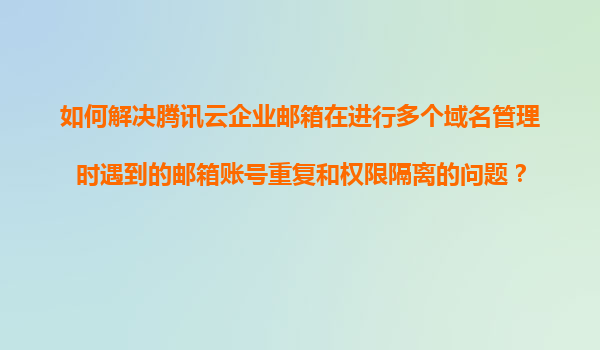 騰訊云企業郵箱多域名管理問題的背景 在企業運營過程中,隨著業務規模的擴大,往往需要使用多個域名來區分不同的業務線或子公司。騰訊云企業郵箱作為一款功能強大的企業郵箱服務,支持多域名管理,但同時也可能遇到...