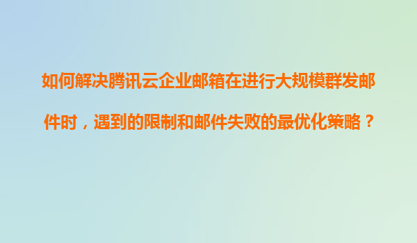 2025-11-13如何解決騰訊云企業郵箱大規模群發郵件的限制與優化策略 問題背景 騰訊云企業郵箱作為國內主流的企業級郵件服務,在安全性和穩定性上表現優異,但面對大規模群...