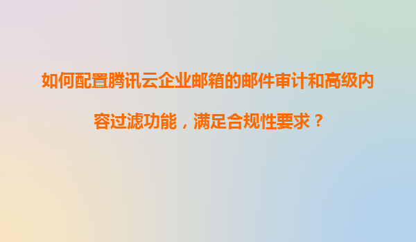2025-11-13如何配置騰訊云企業郵箱的郵件審計和高級內容過濾功能以滿足合規性要求 一、引言 在數字化辦公時代,企業郵箱不僅是溝通工具,更是信息合規管理的重要環節。騰訊云企業郵箱憑借強大的郵件審計和高級內容過...