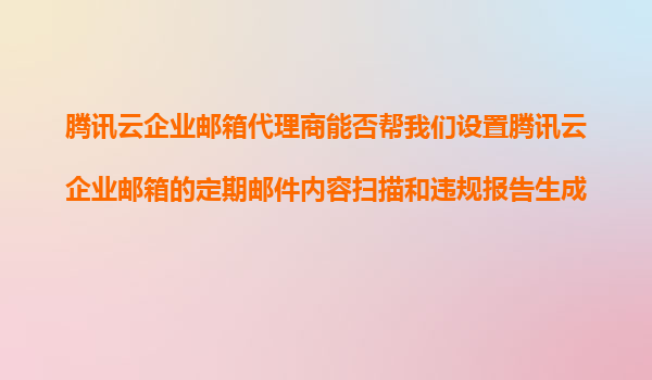2025-11-10騰訊云企業郵箱代理商能否幫我們設置定期郵件內容掃描和違規報告生成? 一、騰訊云企業郵箱的合規管理需求 隨著企業對數據安全和合規管理的重視,定期郵件內容掃描與違規報告生成已成為...