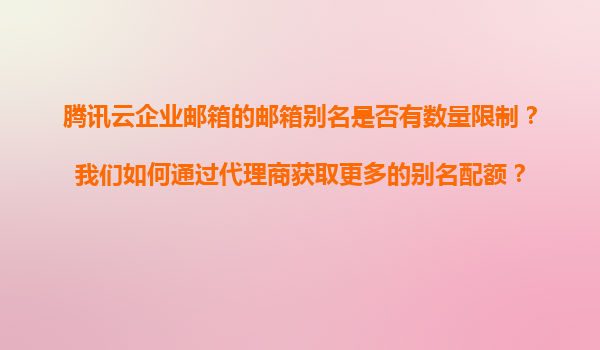 2025-11-10騰訊云企業郵箱別名數量限制與配額獲取指南 一、騰訊云企業郵箱別名功能介紹 企業郵箱別名是指用戶主郵箱賬號的附加名稱,可以接收發送到該別名的郵件,但無法直接用別名登錄或發送郵件。例如:主賬號為zhangsa...