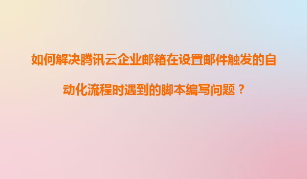如何解決騰訊云企業郵箱在設置郵件觸發的自動化流程時遇到的腳本編寫問題? 一、問題背景與場景分析 騰訊云企業郵箱作為企業級郵件服務,提供了強大的自動化流程功能,用戶可通過郵件觸發條件執行預設操作(如...
