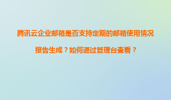 2025-11-09騰訊云企業郵箱:如何定期生成及查看郵箱使用情況報告 一、騰訊云企業郵箱的定期報告功能概述 騰訊云企業郵箱作為一款專業的企業級郵件服務解決方案,提供了豐富的管理功能,其中就包括定期生成郵箱...