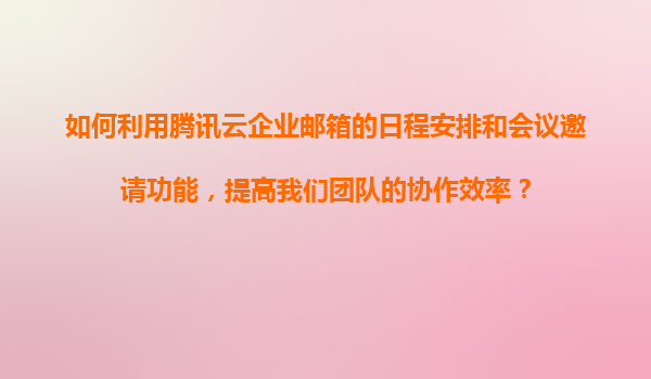 騰訊云企業郵箱的日程管理與會議功能如何賦能團隊協作 在數字化轉型加速的今天,高效協作工具已成為企業發展的剛需。騰訊云企業郵箱憑借其深度融合的日程安排與會議邀請功能,為團隊提供了絲滑流暢的協同體驗。本文...