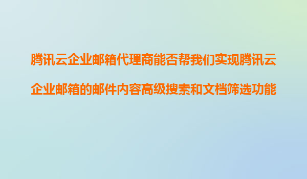 2025-11-09騰訊云企業郵箱代理商能幫您實現高級搜索與文檔篩選功能嗎? 一、騰訊云企業郵箱的核心優勢 騰訊云企業郵箱作為國內領先的企業級郵件服務解決方案,具備以下核心功能優勢: 海量存儲空間-單...
