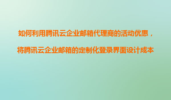 2025-11-09如何利用騰訊云企業郵箱代理商的活動優惠,將定制化登錄界面設計成本降到最低? 在數字化轉型的浪潮中,企業郵箱不僅是溝通工具,更是企業品牌形象的展示窗口。騰訊云企業郵箱憑借其穩定性和豐富的功能,成為眾多企...