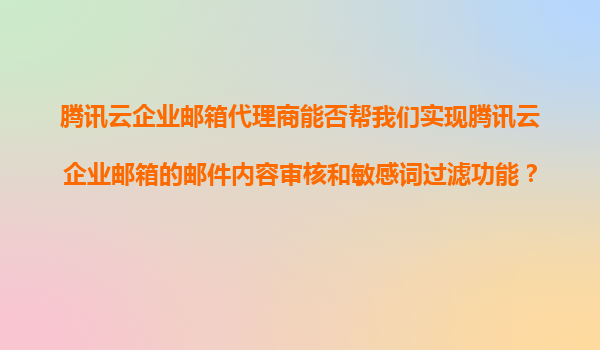 2025-11-08騰訊云企業郵箱代理商能否幫我們實現郵件內容審核與敏感詞過濾功能? 一、騰訊云企業郵箱的核心功能概述 騰訊云企業郵箱作為企業級郵件服務解決方案,提供高效穩定的郵件收發服務,支持多終端同步、組織...