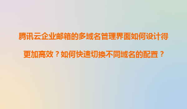 2025-11-08騰訊云企業郵箱多域名管理界面的高效設計思路 騰訊云企業郵箱作為國內領先的企業級郵件服務解決方案,其多域名管理功能在大型企業和集團客戶中具有顯著需求。通過優化界面設計和操作流程,可大幅提升管理員的工作效...