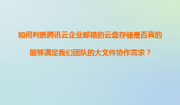 2025-11-07評估騰訊云企業郵箱云盤存儲的大文件協作能力 在數字化辦公時代,企業郵箱的云盤功能已成為團隊協作的核心工具之一。騰訊云企業郵箱憑借其穩定的云服務架構和豐富的協作功能,為企業提供了高效的文件存儲與...