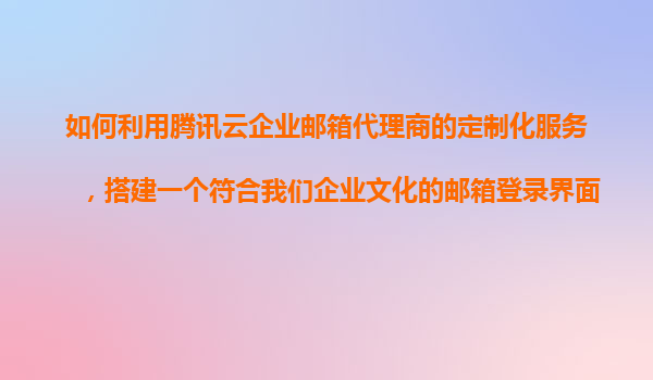 2025-11-05如何利用騰訊云企業郵箱代理商的定制化服務,搭建符合企業文化的郵箱登錄界面 一、騰訊云企業郵箱的定制化服務優勢解析 騰訊云企業郵箱作為國內領先的企業級郵箱解決方案,其代理商提供的定制化服務具備以...