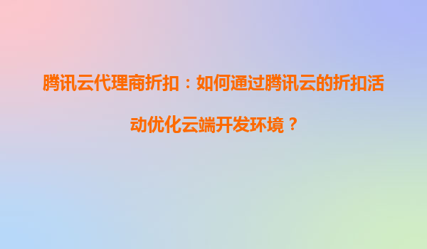 騰訊云代理商折扣:如何通過騰訊云的折扣活動優化云端開發環境?