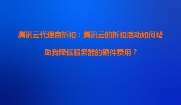 騰訊云代理商折扣:如何利用折扣活動降低服務器硬件費用