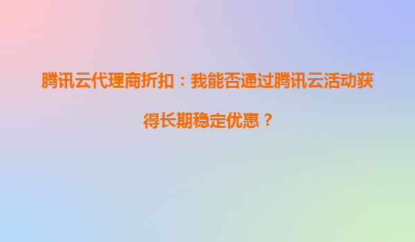 騰訊云代理商折扣:能否通過騰訊云活動獲得長期穩定優惠?