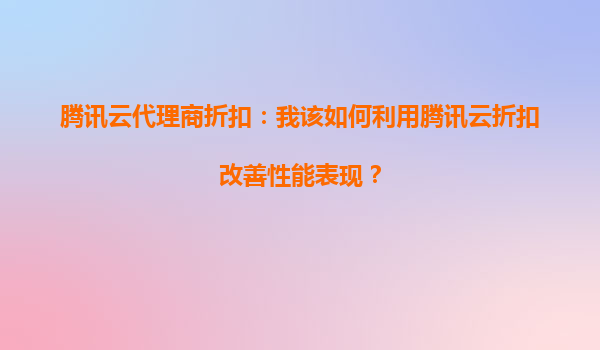 騰訊云代理商折扣:如何利用騰訊云折扣改善性能表現