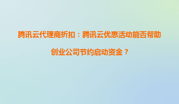 騰訊云代理商折扣:騰訊云優惠活動能否幫助創業公司節約啟動資金?