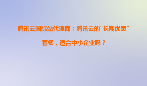 騰訊云國際站代理商:長期優惠套餐是否適合中小企業?