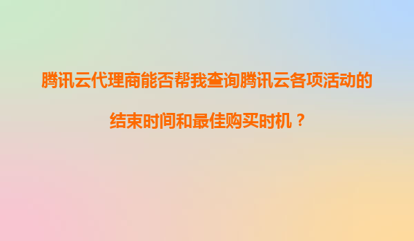 騰訊云代理商的價值:如何查詢活動截止時間與把握最佳購買時機? 一、為什么要關注騰訊云活動的結束時間? 騰訊云作為國內領先的云計算服務提供商,每年會推出數十場促銷活動,包括新用戶首購優惠...